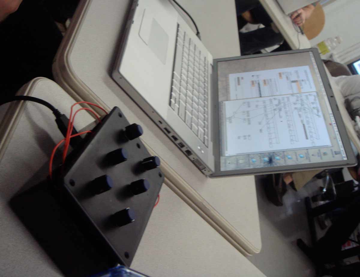 Many of these projects relied on the Arduino to bring data from sensors into the computer. One older approach used here is a hacked USB joystick with sensors added to make a quick HID device.